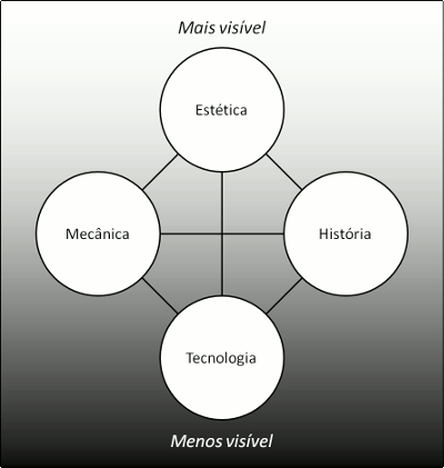 Jesse Schell em seu livro "A Arte do Gamedesign", classificou os jogos em 4 elementos, e a chamou de Tétrade Elementar, conforme a imagem abaixo:
